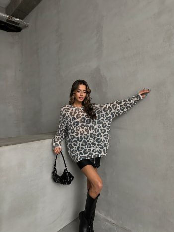 Leopard Patterned Knitted Sweater