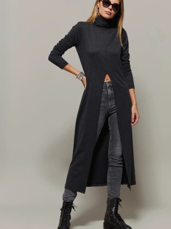 Anthracite Turtleneck Long Slit Tunic