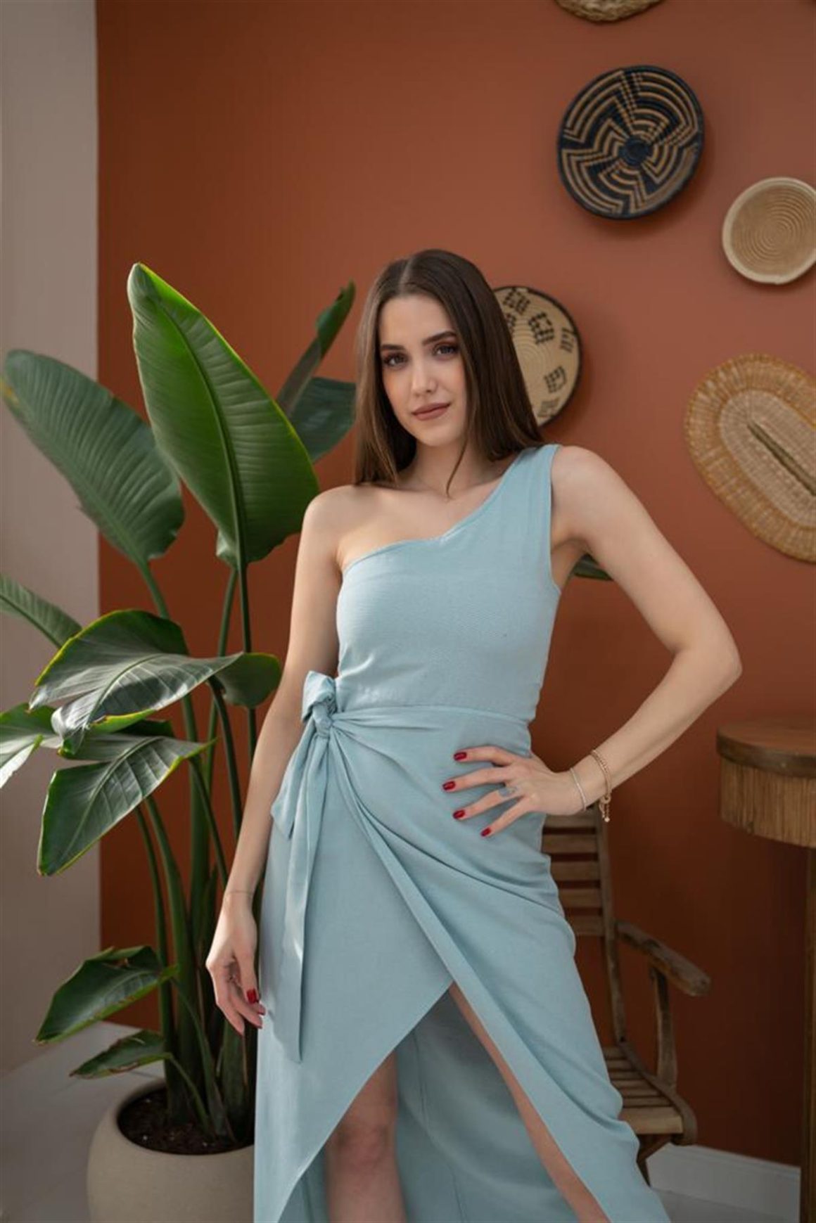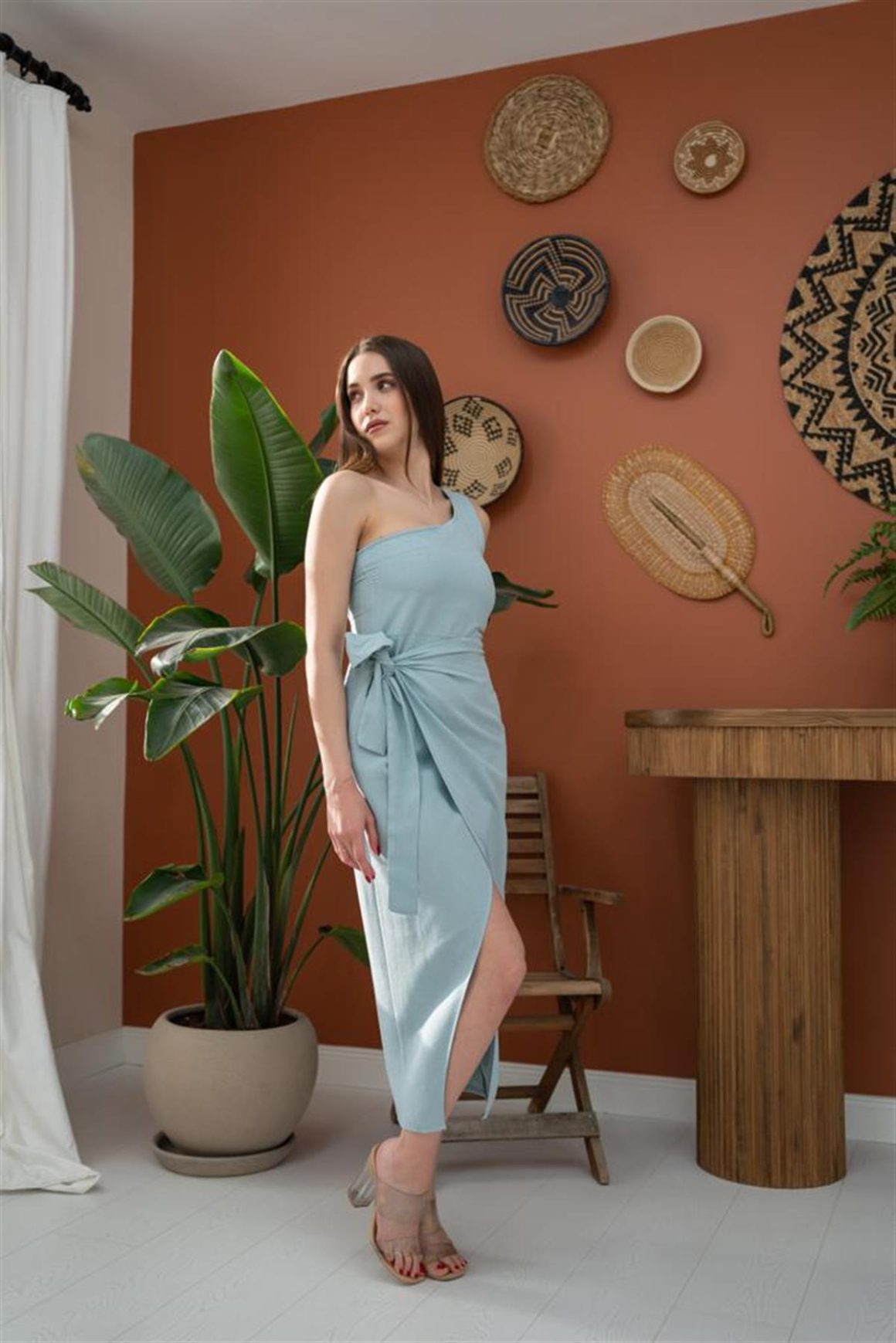 Λινο κρουαζε φορεμα με έναν ωμ...