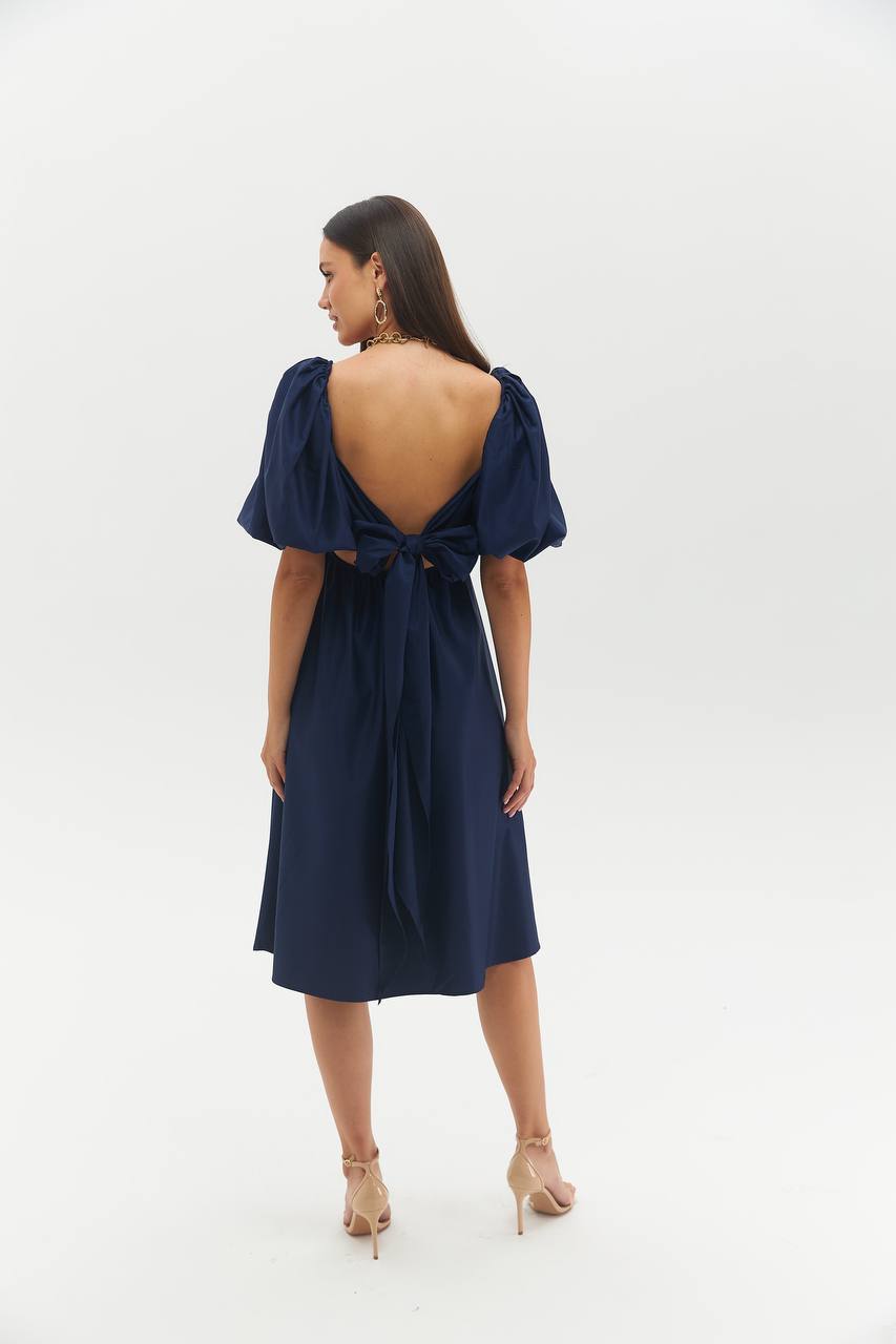 Φόρεμα με balloon μανίκια- Μπλ...