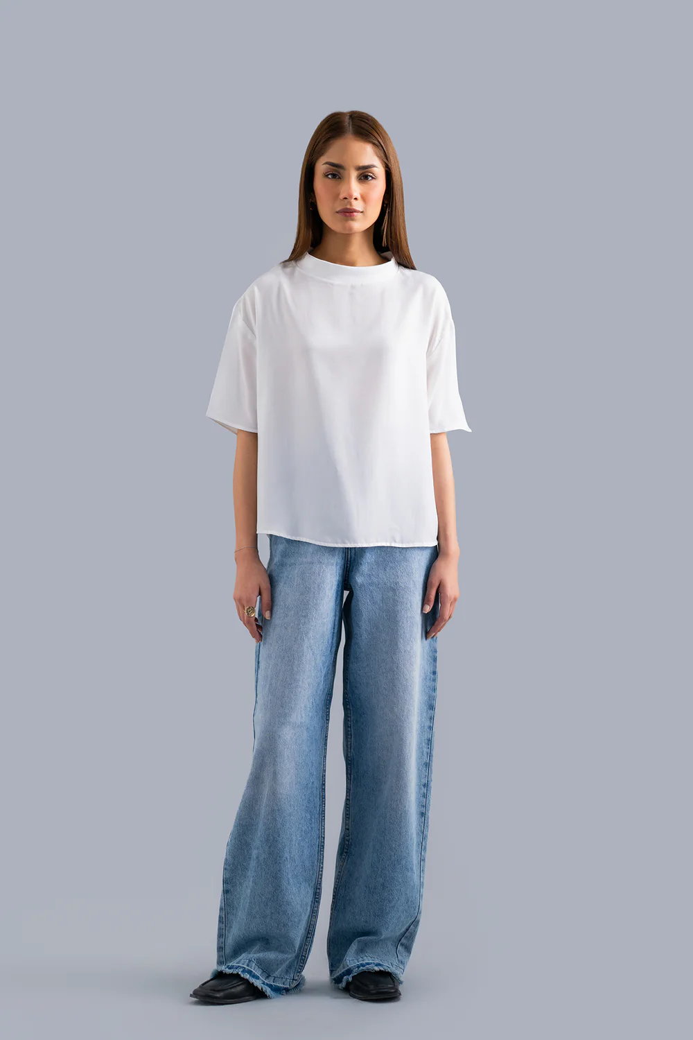 This white ban round neck top is the perfect staple piece for any wardrobe, it offers both comfort and style. The elegant silhouette adds a touch of sophistication to any outfit. Upgrade your wardrobe with this versatile and timeless solid top.