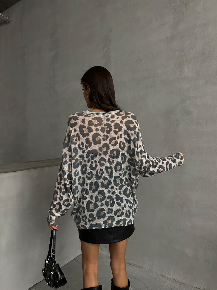 Leopard Patterned Knitted Sweater