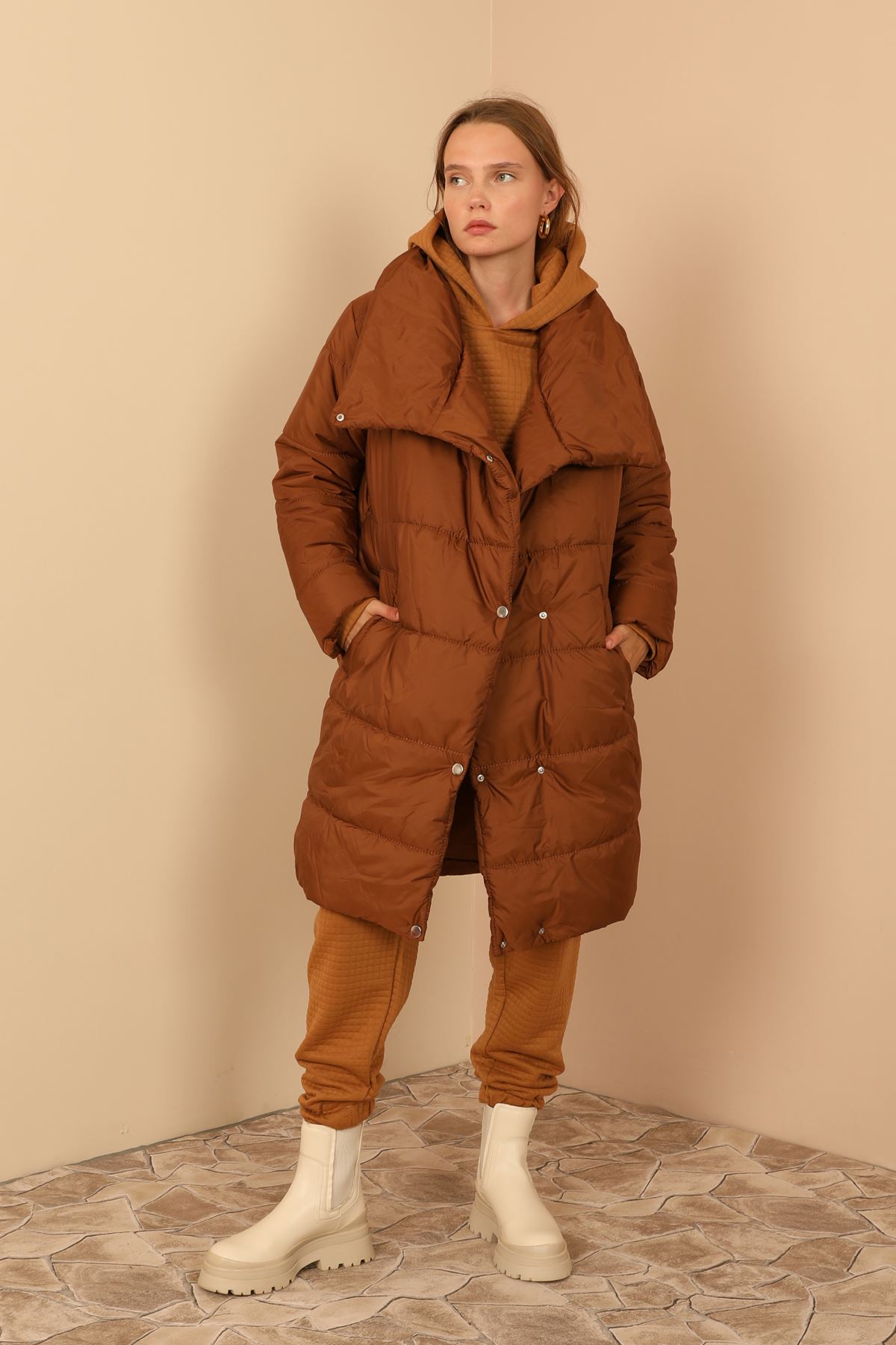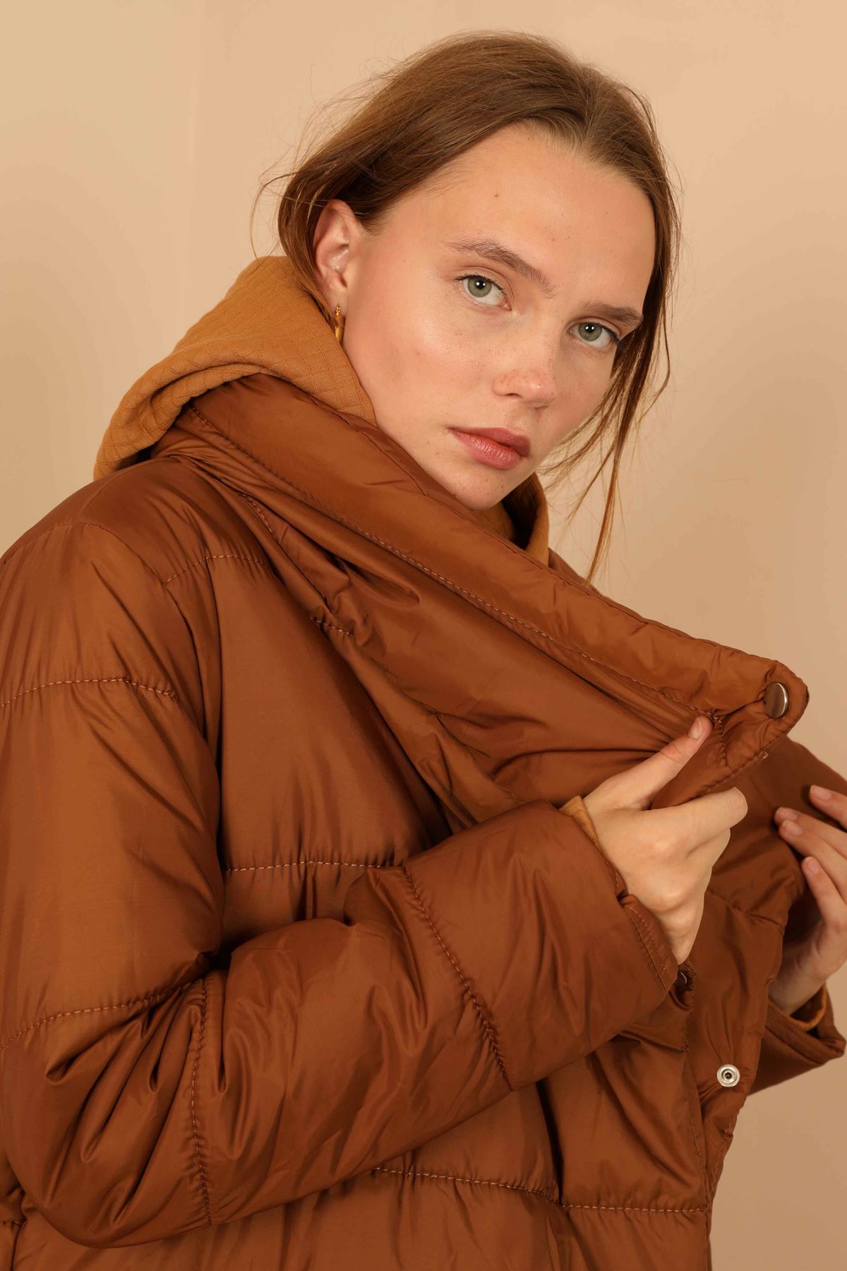 Nylon Quilted Fabric Hooded Women’s Coat – Claret Red