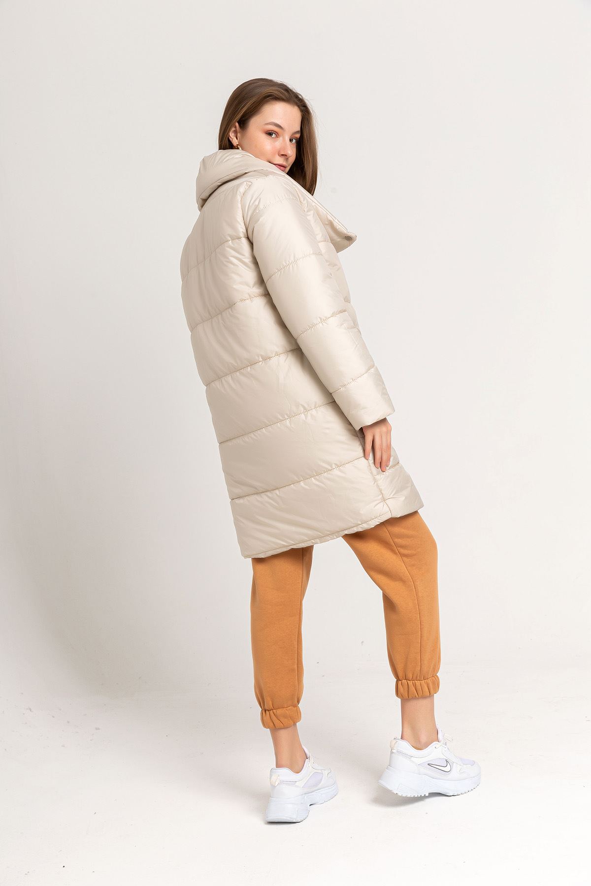 Nylon Quilted Fabric Hooded Women’s Coat – Gray